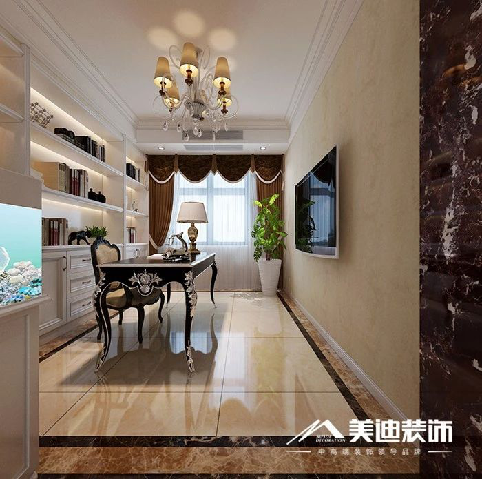 人工照明:書房內的寫字臺或電腦臺,在臺面上方應裝電源線、電腦線、電話線、電視線終端接口;從安全角度考慮,應在寫字臺或電腦下方裝電源插口1-2個,以備電腦配套設備電源用;照明燈光若為多頭燈應增加分控器,開關可安裝在書房門內側。