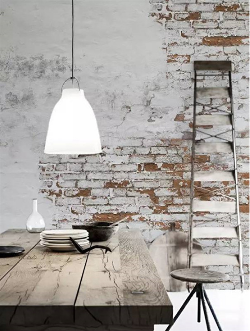 有些陳舊、粗糙,又個性的背景墻,讓室內變得無拘且自然。