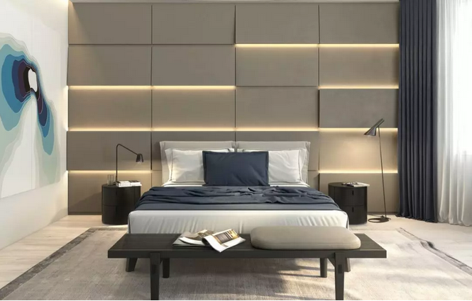 臥室我們一般除了主燈之外,還有一些輔助的燈具,比如在床頭設(shè)置壁燈、或是一些小型射燈或者發(fā)光燈槽、筒燈等作為裝飾性照明,或是輔助性照明,以降低室內(nèi)光反差。