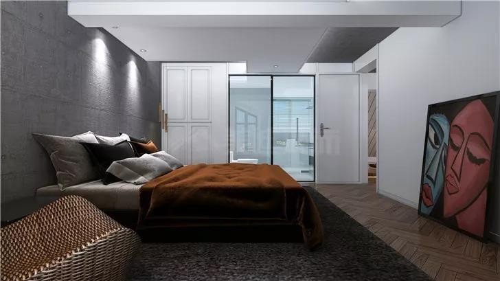 臥室:地毯與背景墻也選擇了灰色,再搭配了一些原木材質,傳遞出一種與生俱來的成熟氣質,獨有的低調內斂個性。