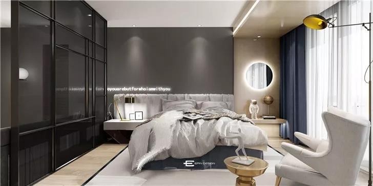 臥室:黑色到頂立柜,在追求時尚感的同時滿足儲物功能需求。