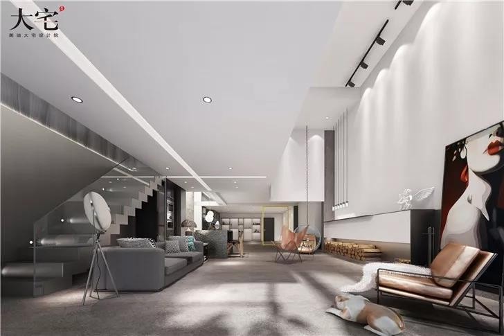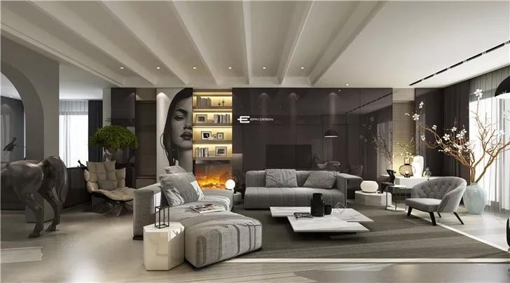 客廳:強調灰白之間的極致碰撞,從視覺上拉伸空間感。除色彩外,設計師也從材質、空間的細膩處來傳達時尚的獨到之處。