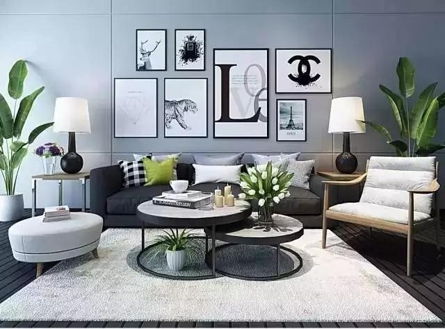 墻上的掛畫和整個客廳的色調一樣,黑白灰三種顏色,最經典的搭配。