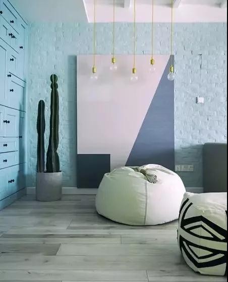 介于藍色和綠色之間的粉藍和粉綠是最容易營造自然清新的空間氛圍,明度相對溫和,也是非常適合做背景墻的一種色系。