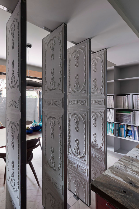 你以為這邊是墻嗎?那你肯定錯了,其實(shí)整個屋子都是屏風(fēng)的設(shè)計。只要一觸動開關(guān),就可以輕松將整個屋子鏈接在一起。