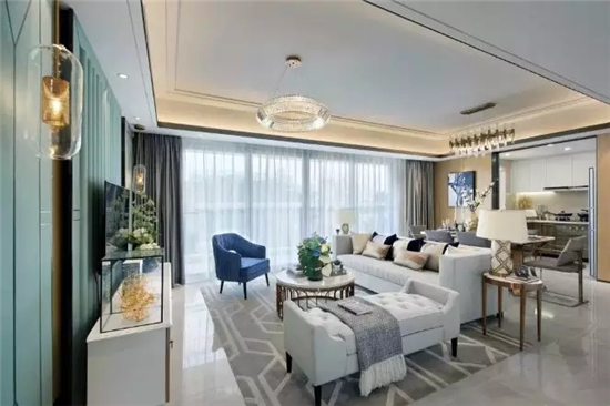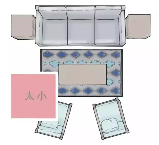 最佳的客廳地毯尺寸是:地毯的長度和寬度超過最長沙發的長度和寬度,讓整個客廳呈現出“全包圍”的效果,這樣能明顯劃分出客廳的區域。
