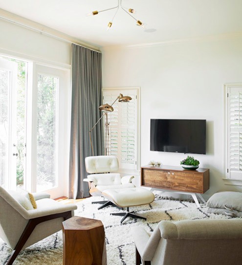 開敞的空間,如何劃分區域呢?設巧妙的把一整塊黑白做隔墻,營造了隨心愜意的空間,錯落有致的布局,也融合了實用性和建筑美學。