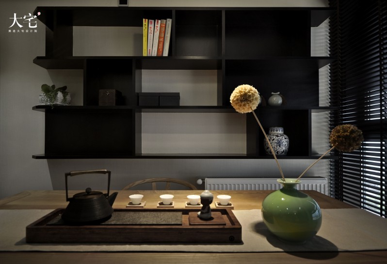 規避了濃墨重彩裝飾的書房,巧克力茶色懸式書架、原木色的桌椅、羅列整齊的茶具,所有的裝飾點綴的恰到好處,既不沉悶,也不浮躁,滿滿詩意的空間里彌漫著清幽淡雅的書香味,而且時間愈久愈散發出迷人的東方雅韻。