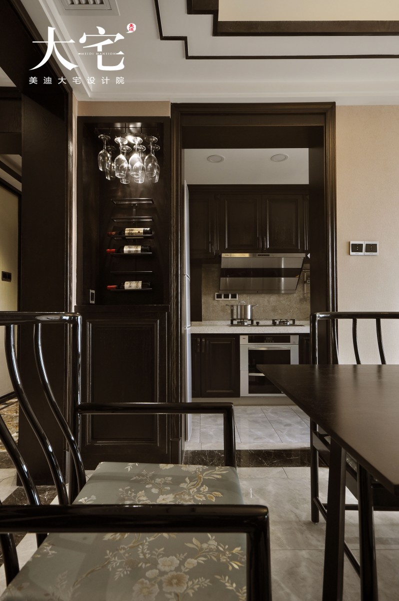 ▲餐廳旁的紅酒柜設計和廚房設計都是為了提高運用在生活中的方便性。