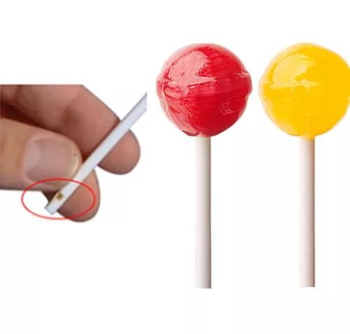 「不是給我們吹口哨,而是了防止糖果掉落特意挖的洞。棒棒糖在制作的過程中,部分糖漿會流到塑料管里面,冷卻后內外向連,這樣糖球就會牢牢地固定在塑料管的頂端,就無需擔心糖球會滑落了」