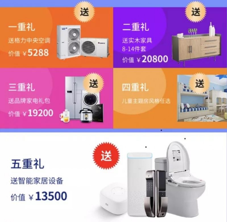 格力中央空調、8-14件套實木家具、品牌家電禮包、智能家居設備、兒童房;五重好禮,總有一款讓你心動。