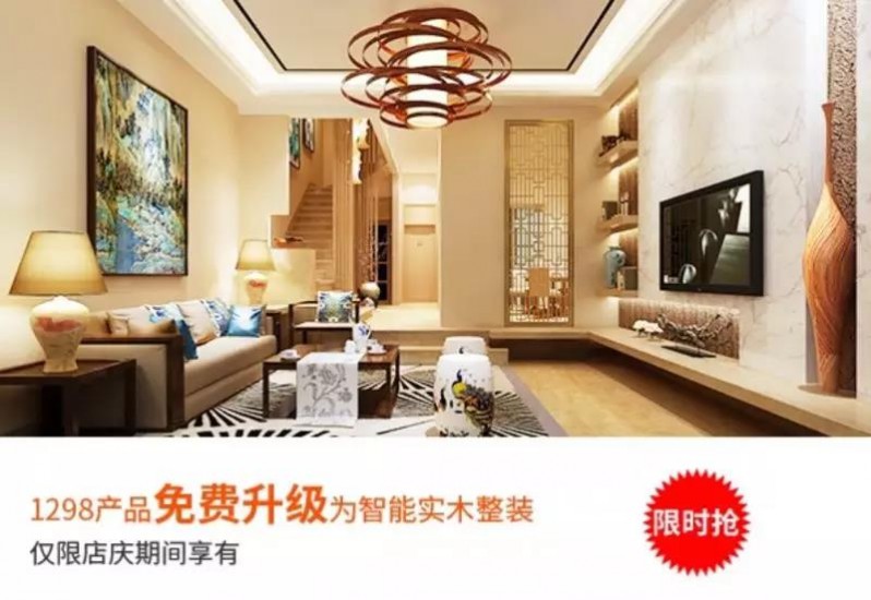 原價1700元/平米,店慶推廣價1298元/平米,全系墅裝主材+全系進口基材+全系生態實木免費升級+全房品牌家電大贈送+全房品牌家具大贈送+智能設備免費送。