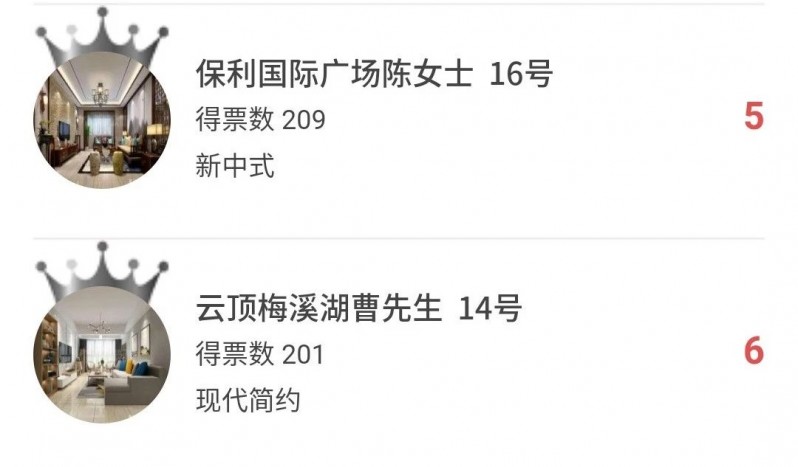 本次的人氣美家投票評(píng)選在7月14日24點(diǎn)就圓滿結(jié)束啦,感謝大家積極參與呀,現(xiàn)在到了最激動(dòng)人心的一刻,公布獲獎(jiǎng)名單,讓我們一起來(lái)看一下哪六位業(yè)主將會(huì)獲得本次活動(dòng)的獎(jiǎng)品呢?請(qǐng)看下方小屏幕?