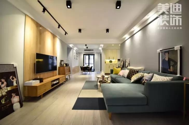 整體的設計上,硬裝無需做太繁雜的造型,關鍵在于軟裝的搭配來營造北歐的溫馨雅致風情。因為男主人忙于工作,家中的軟裝基本是女主人一手操辦。柔軟的灰藍色沙發搭配深灰色地毯,亮色靠枕、木質柜體等色彩的跳躍給空間帶來更為豐富的層次感覺。