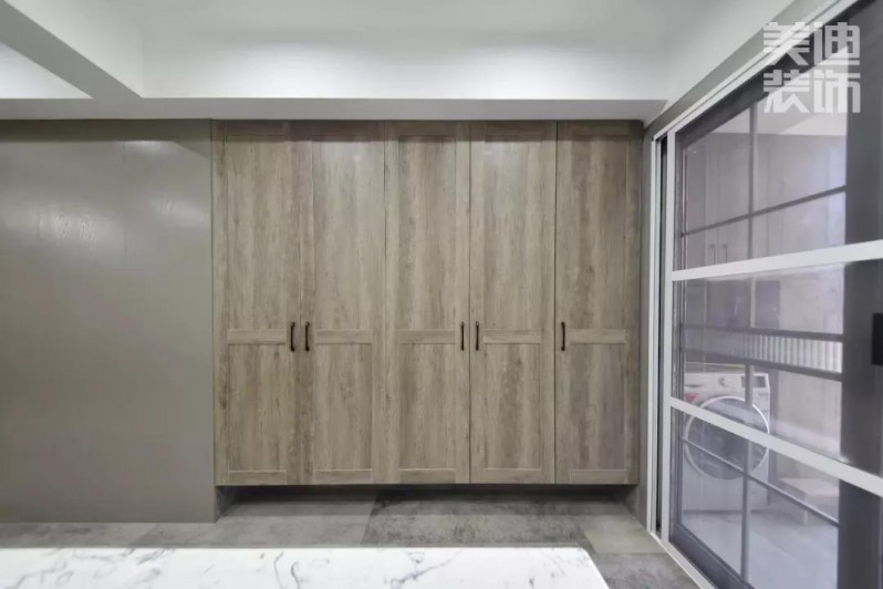 房屋的戶型變動(dòng)不算小,為了擴(kuò)大餐廳區(qū)域,設(shè)計(jì)師將原本的衣帽間拆除,又考慮到一家人的收納問(wèn)題,設(shè)計(jì)師還將餐廳和臥室墻面設(shè)計(jì)成雙面都可開(kāi)的收納柜,收納空間瞬間擴(kuò)大不少。