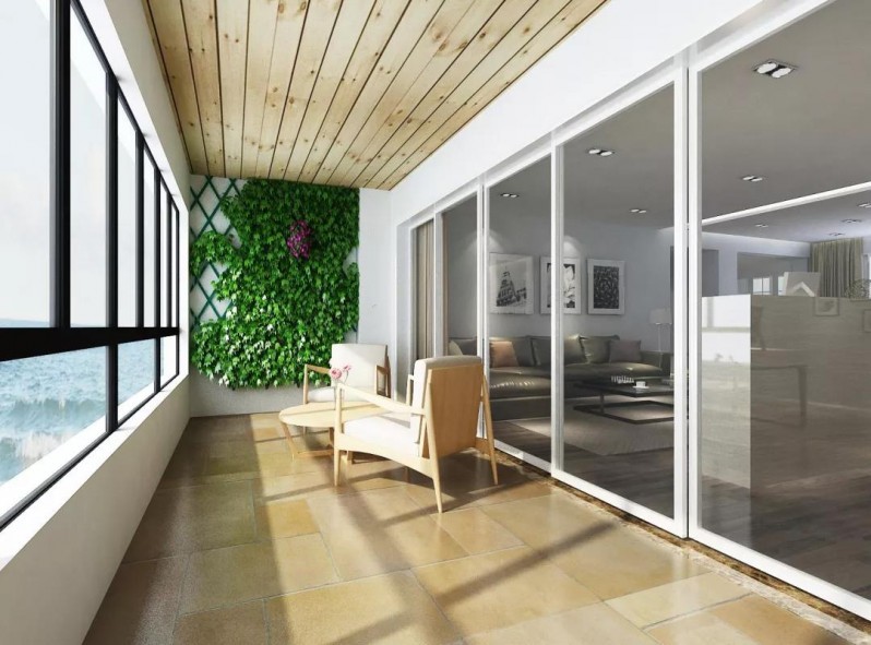 如果是緊靠廚房的生活陽(yáng)臺(tái),還可利用陽(yáng)臺(tái)的一角建筑一個(gè)儲(chǔ)物柜,存放一些蔬菜食品或不經(jīng)常使用的物品。供休息、餐飲使用的陽(yáng)臺(tái),也可以擺放少量的折疊家具