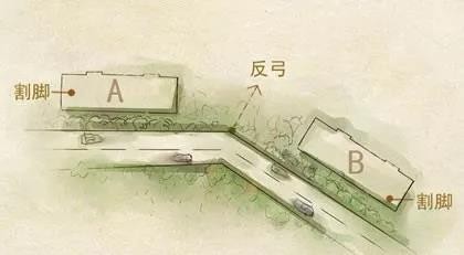城市的街道有彎有直,倘若從陽(yáng)臺(tái)外望,看見(jiàn)屋前的街道彎曲,而彎角直沖向陽(yáng)臺(tái),這就是”街道反弓”的格局。可以做花架種滿爬植物或旋轉(zhuǎn)盆栽,使其內(nèi)外隔絕