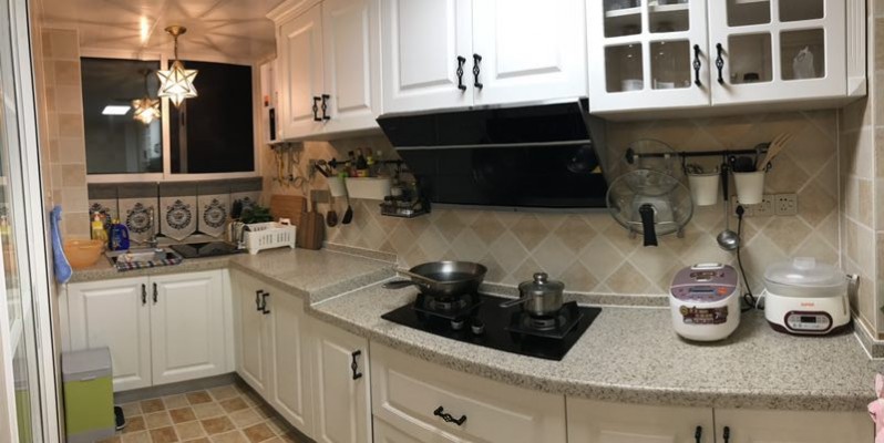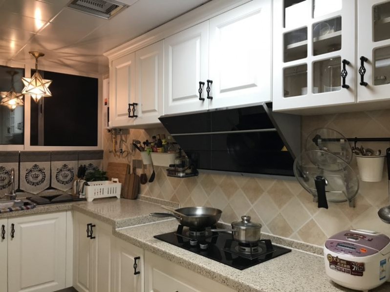 封閉式廚房,選用高品質的抽油煙機以及模壓板櫥柜解決廚房油煙問題。