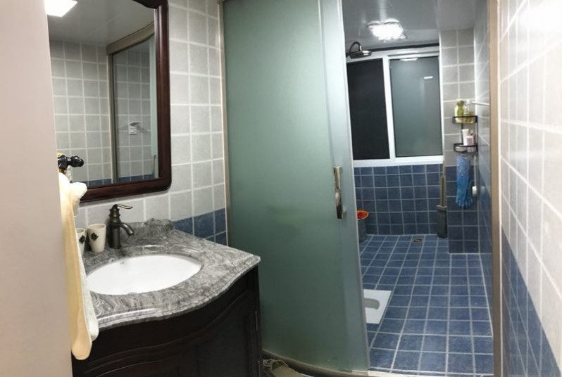原始衛生間有突出的墻體導致空間變得狹窄,同時設計師通過后期隔出一個衣帽間,將整個墻進行拉平,戶型更加方正。