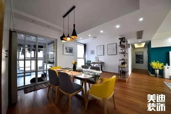 這是世茂外灘里的業主美家,他特別注重室內的空間感。設計師將客廳、餐桌及辦公地點三者合為一體,沒有滿滿的實物進行間隔,要的只是滿足居住者的那種自由。