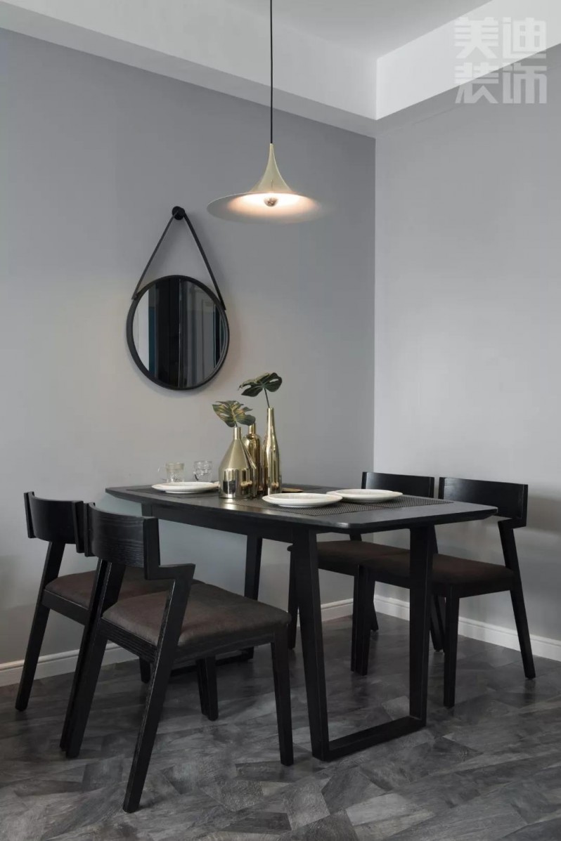 ▲實木智能整裝·餐廳丨黑色擴展了空間的視覺張力,一深一淺的明顯色澤差異也使得空間更具層次感。