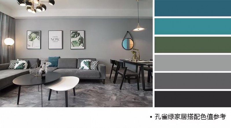 孔雀綠:孔雀綠色調是一種萬能的中性色彩,它是所有綠色系中最穩重的一種色調,充分運用青綠色可以在家裝中發揮出時尚復古的作用。