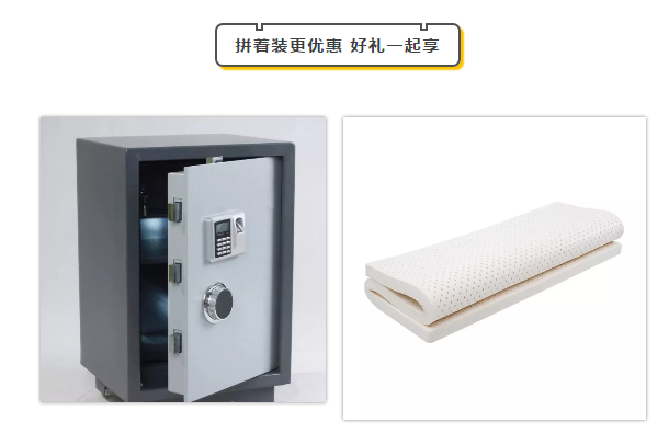 兩人及兩人以上成團簽單,即可享受“拼客體驗”優惠。兩人拼客成功每人贈送智能保險箱1個;四人拼客成功每人送價值3880元橡膠床墊一個。