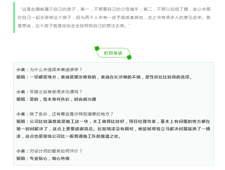 本期《美家記》的屋主娟娟是一從事媒體工作的大美人,“漂亮、有主見、能干”很多美好的關(guān)鍵詞標(biāo)簽在她身上都能看到。“這個(gè)房子我不想太中規(guī)中矩,就是想跟別人不一樣。”這是娟娟買房后對(duì)新家的期待。本期《美家記》,讓我們一起走進(jìn)娟娟美人的個(gè)性美家。