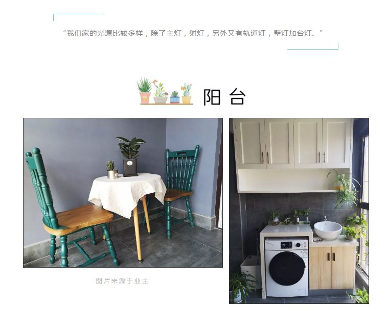 陽(yáng)臺(tái)邊上擺放了質(zhì)感復(fù)古桌椅,成為了業(yè)主娟娟的居心地。周末在家,沏上一杯咖啡,遙望窗外的風(fēng)景,想想也足夠愜意。