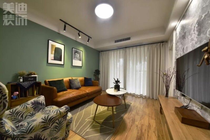 業(yè)主娟娟家是小三房戶型,面積雖不大,卻呈現(xiàn)出了豐富的可能性。橄欖綠乳膠漆墻面用簡(jiǎn)約藝術(shù)裝飾畫點(diǎn)綴,復(fù)古的木紋地板搭配白色茶幾,整個(gè)空間跳出傳統(tǒng)美式的復(fù)雜感,給人一種個(gè)性卻不失優(yōu)雅的感覺。