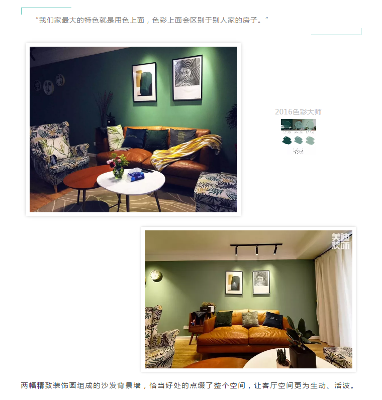 業(yè)主娟娟是一名“顏控”,室內(nèi)主題顏色上用的十分大膽,選用了自己喜歡的綠色。“我本身對(duì)色彩,時(shí)尚感興趣,我家的顏色源于2016年的色彩大師。”在大多數(shù)人眼中,用綠色作為裝修主色調(diào)非常少見,但不管如何,自己喜歡最重要。