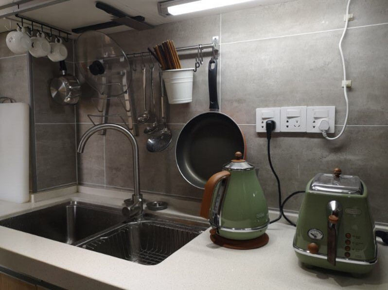 輔助燈光的加入,提亮了操作臺(tái)面的亮度。貼心的設(shè)計(jì),讓屋主下廚更加得心用手。