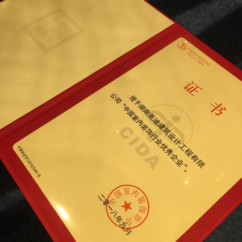 △ 美迪裝飾獲得“中國室內裝飾行業優秀企業”獎