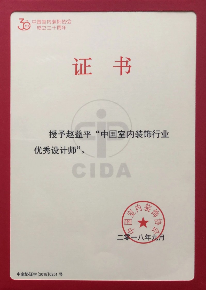 △ 美迪大宅設計院院長 趙益平獲得“中國室內裝飾行業優秀設計師”獎