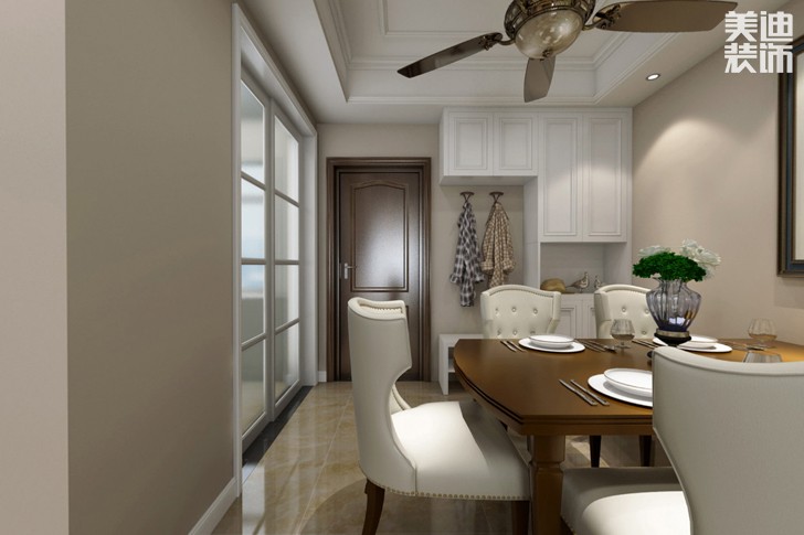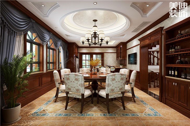 美式田園風格有務實、規范、成熟的特點,餐廳設計很大氣,在大空間里更有感覺