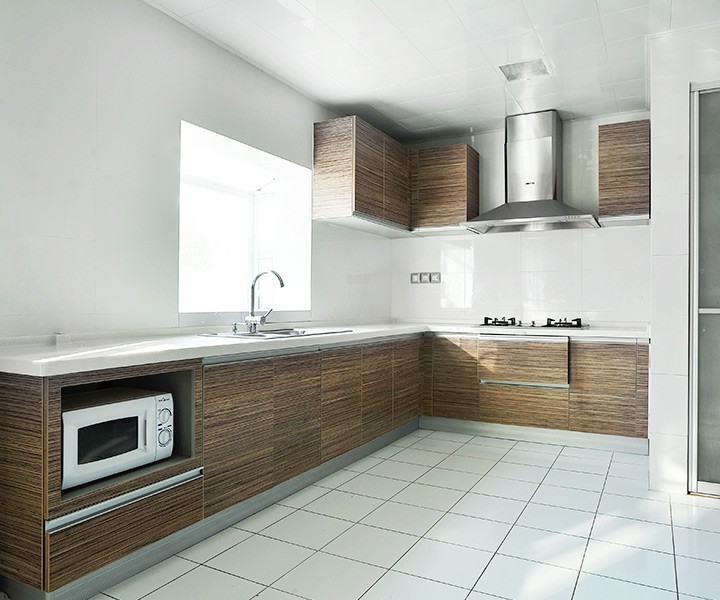 如果使用的人造裝飾板,那么就要看櫥柜門板,甲醛含量以及苯、氡之類的有害物質都是需要重視的。柜體方面,要注意是不是用的高門板配低柜體,一定要小心柜體板和膠水的環保性。飾面漆的環保性也是一個衡量因素,切不可貪圖便宜。