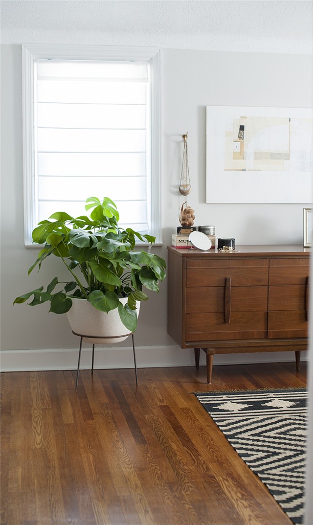 本身綠植與木質(zhì)都富有極強(qiáng)的自然氣息,因此一盆綠植搭配在木質(zhì)柜子旁邊尤為和諧。