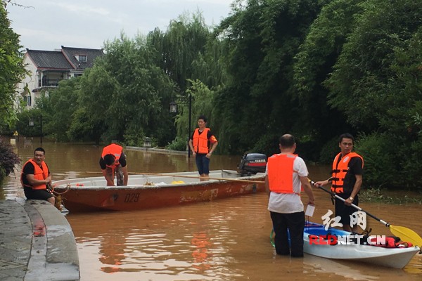 長沙:美迪人劃船涉水救援受困業主
