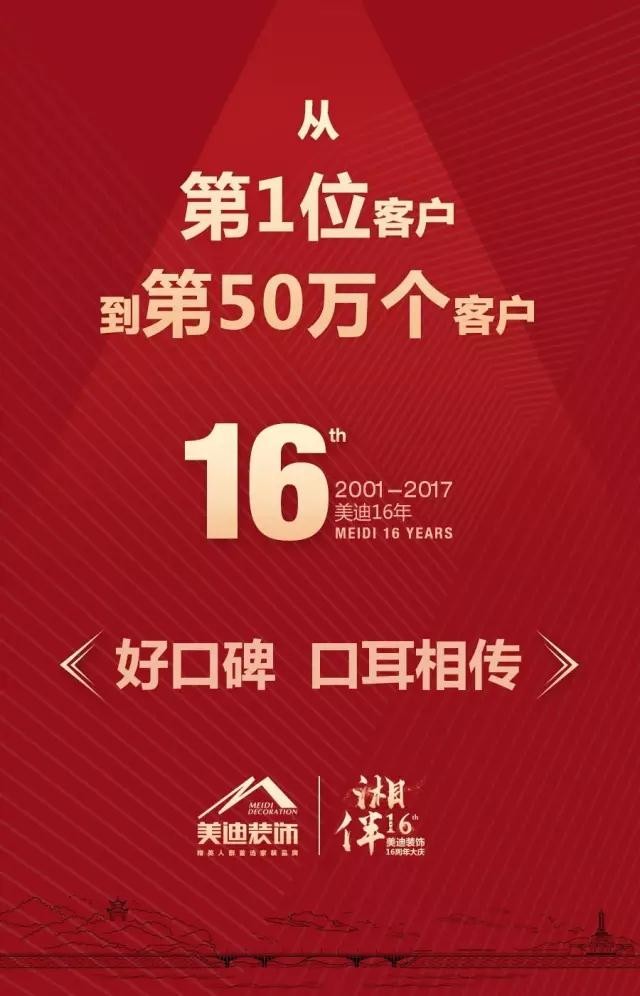 16年間,美迪為超過500000精英家庭打造新家,成為李自健、魏哲浩等上千名流的共同選擇。美迪憑借優秀的設計、優質的施工和服務,16年來零投訴零舉報誠信經營,成為湖南精英人群首選家裝品牌。
