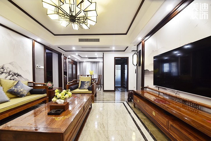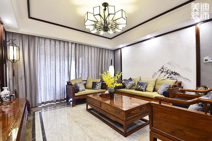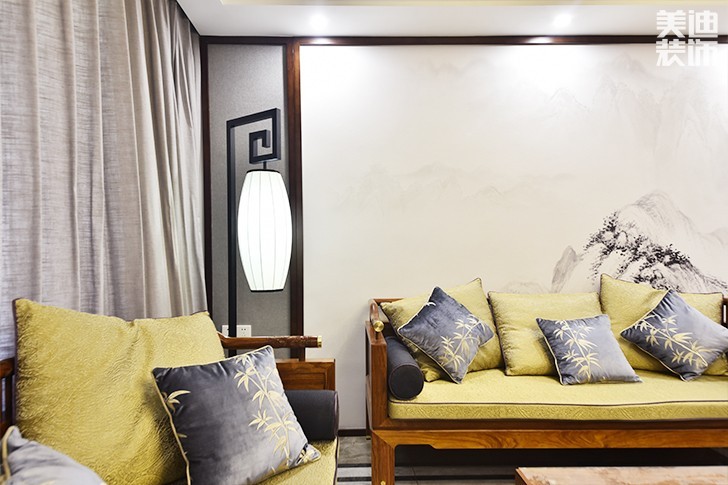 中國傳統(tǒng)居室非常講究空間的層次感,這種傳統(tǒng)的審美觀念在“新中式”裝飾風(fēng)格中,又得到了全新的闡釋。依據(jù)住宅使用人數(shù)和私密程度的不同,需要做出分隔的功能性空間,則采用“埡口”或簡約化的“博古架” 來區(qū)分;在需要隔絕視線的地方,則使用中式的屏風(fēng)或窗欞,通過這種新的分隔方式,單元式住宅就展現(xiàn)出中式家居的層次之美。