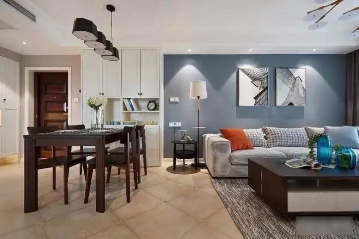 客廳背景墻是宜家風最受捧的灰藍色調(diào),搭配繪有年輪圖案的米色布藝沙發(fā),輕松愉悅又非常的溫馨,給人家的感覺,素雅簡單的抱枕不僅抱著非常舒服,還能填充過于素凈單調(diào)的沙發(fā),茶幾選擇了與餐桌一致的深咖色,在綠植和藍色玻璃瓶的襯托下,很生動有意境感,也讓整個客廳雅致清透不少。