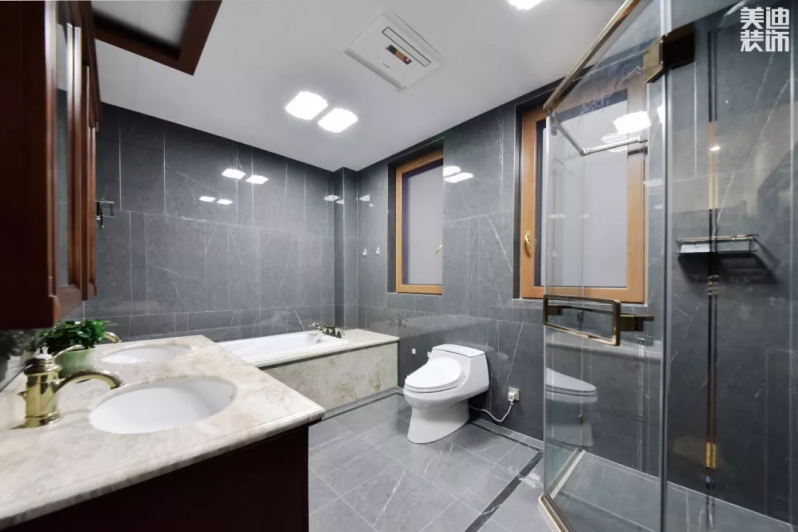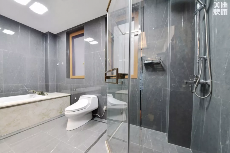 衛生間采用高級灰色調,整個空間明亮簡潔,墻面磚采用錯拼的方式,使空間更具層次感。