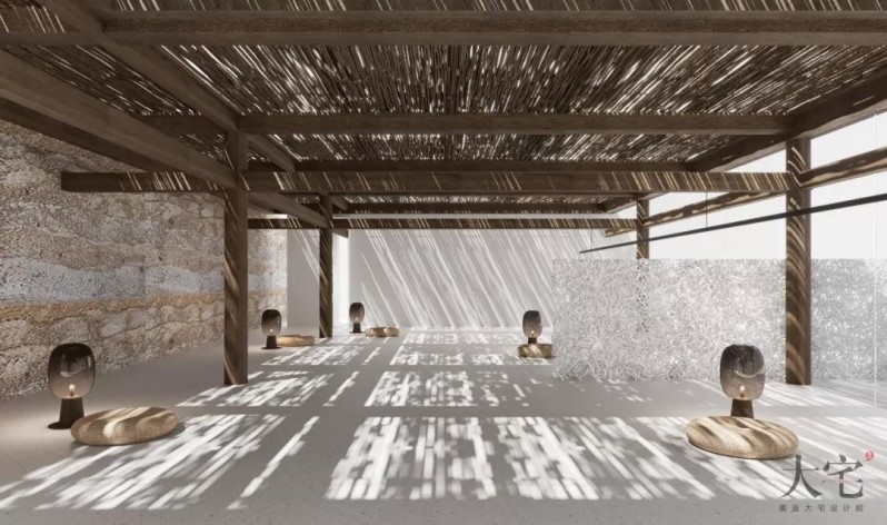 主要材料:夯土,樹枝,老木柱,老木板,線性照明,水洗石