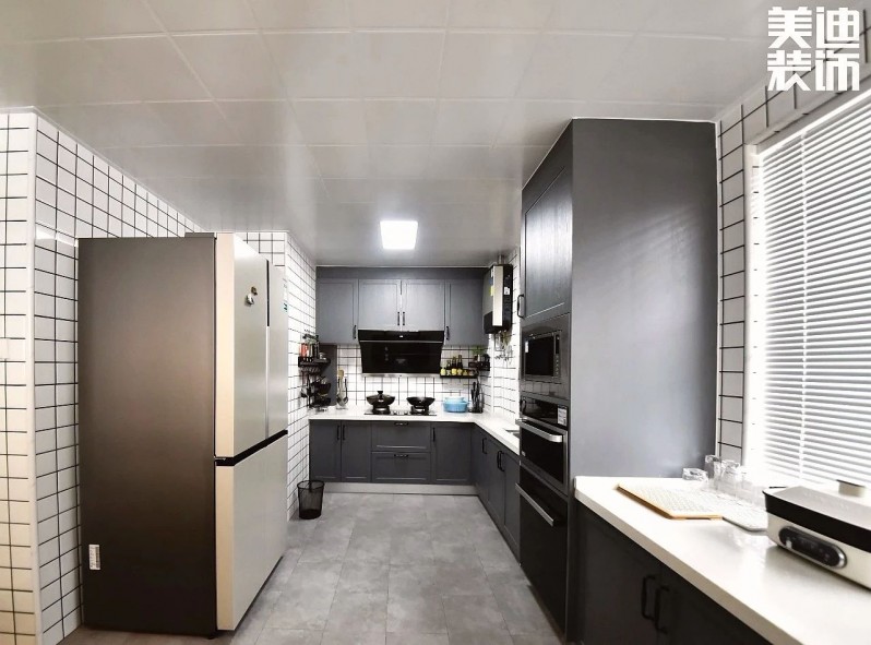 2.原本戶型廚房較小,為滿足小敏的需求,龔廣輝設計師把原來餐廳的位置擴充到了廚房,使整個空間有效利用率更高。