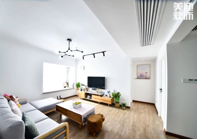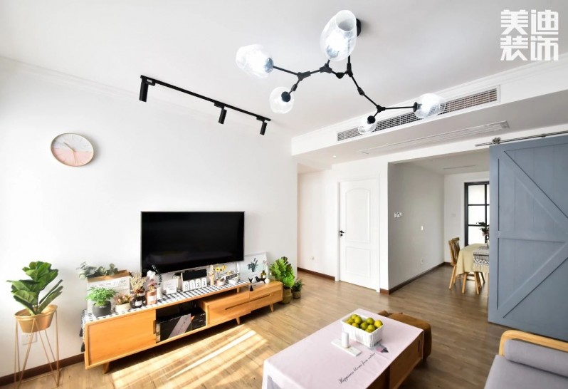 客廳區域刷白的大墻面與小資文藝的吊燈,小敏還特意跑去廣東佛山看家具,回長沙尋找并購買之前看中的家具,裝扮出一個簡約溫馨的空間。