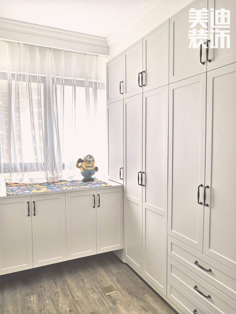 能夠擁有一個屬于自己的衣帽間,是大多數女生的夢想,小敏也不例外。龔廣輝設計師將最小的房間改造成衣帽間,滿足小敏的衣物收納需求。