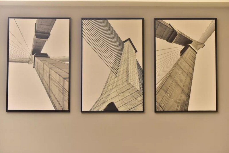 客廳藝術(shù)掛畫(huà)是設(shè)計(jì)師為業(yè)主精心挑選的,建筑的灰白調(diào),以及層次分明的線(xiàn)條感,極大程度上提升了整個(gè)空間的格調(diào)。