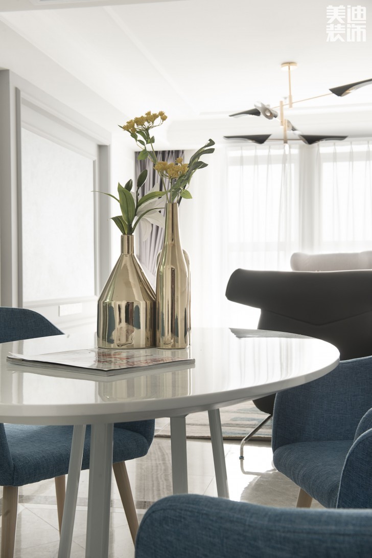 餐桌上加上金色擺件,頗有一番浪漫的情調。新古典主義會去除線條上過多的繁雜裝飾,保留細節。