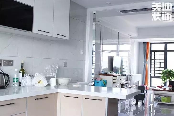 業(yè)主曹先生一家崇尚極簡生活,在和設(shè)計(jì)師張勛溝通后果斷選擇了與他們生活理念一致的現(xiàn)代簡約風(fēng)。因原戶型廚房與客廳面積太小,設(shè)計(jì)師考慮到業(yè)主一家平時(shí)很少下廚,與業(yè)主溝通后,將廚房與客廳合并在一起。房子自從開工以來,鄰居幾乎不間斷的前來參觀工藝和效果。