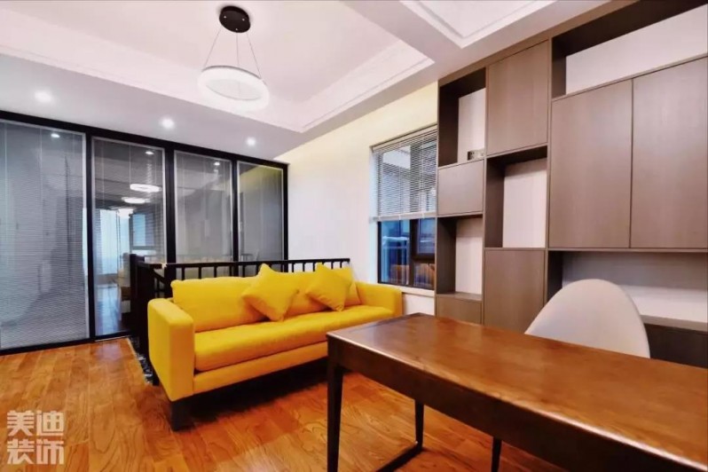 5、客房在靠北面無采光,采用整面落地玻璃隔斷,北面空間做成全敞開式的書房,主臥加大空間,增加大型衣帽間。